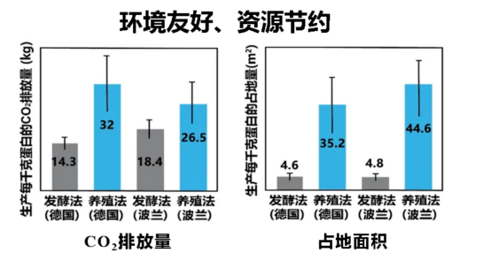 尤為值得一提的是,微生物蛋白的生產(chǎn)過程低碳環(huán)保,以酵母蛋白為例,生產(chǎn)每公斤酵母蛋白的碳排放量僅為動物蛋白的1/20,水耗為動物蛋白的1/200,這使得酵母蛋白在降低碳排放、節(jié)約耕地和淡水資源方面具有顯著優(yōu)勢。