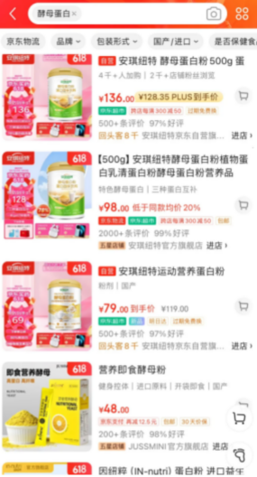 (在京東平臺上,將“酵母蛋白”作為關鍵詞,推薦的產(chǎn)品前三位均歸屬于安琪紐特)