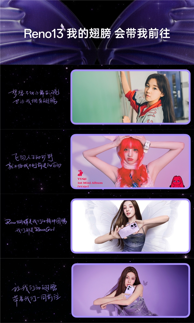 OPPO Reno13系列在外觀設(shè)計(jì)方面再次實(shí)現(xiàn)突破,從蝶翼汲取靈感,精心打造蝶蝶紫潮流配色。設(shè)計(jì)團(tuán)隊(duì)將蝶翼流光元素巧妙融入"超美小直屏",開(kāi)創(chuàng)下一代潮流美學(xué)新篇章。這一設(shè)計(jì)不僅體現(xiàn)了外在美的追求,更深刻詮釋了OPPO Reno系列的內(nèi)在精神。品牌攜手代言人宋雨琦,完美演繹"我的翅膀,會(huì)帶我前往"的品牌理念,展現(xiàn)Reno Girl不被定義的獨(dú)特生命力。