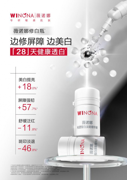 進(jìn)入秋冬,皮膚在冷熱交替下屏障受損、暗沉無光,如何快速美白成為消費(fèi)者關(guān)注的護(hù)膚熱點(diǎn)之一。針對脆弱肌膚出現(xiàn)的泛紅、黃氣等問題,薇諾娜推出了邊修變白的“修白瓶”,以28天健康透白為消費(fèi)者白嫩肌膚加分賦能。