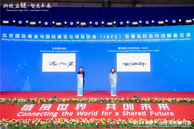 推介會上共達成三項正式簽約,務實推進國際交流合作,為北京產業(yè)鏈發(fā)展注入新動能。北京市貿促會與國家發(fā)展和改革委員會國際合作中心簽署戰(zhàn)略合作協(xié)議,北京國際商會與國際展覽與項目協(xié)會(IAEE)簽署友好合作諒解備忘錄。北京順義區(qū)政府投資引導基金揭牌暨聯(lián)動投資戰(zhàn)略合作伙伴簽約,該引導基金注冊資本10億元,遠期規(guī)模為100億元。