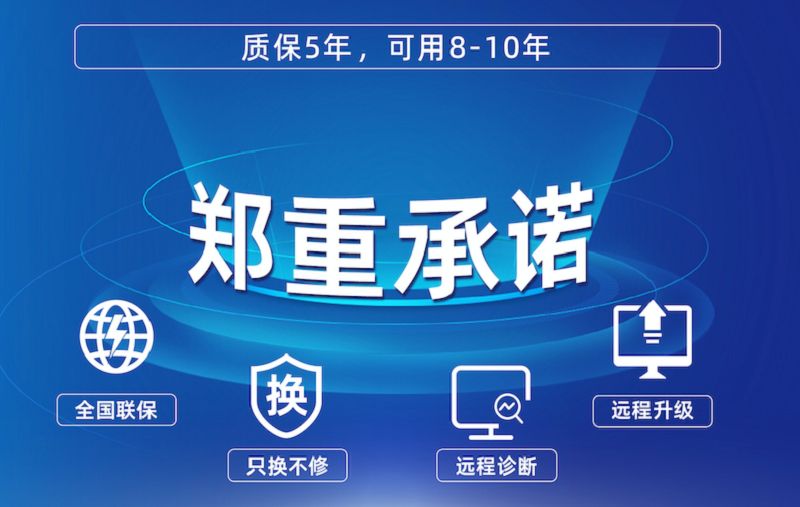 5年超長(zhǎng)質(zhì)保,可實(shí)現(xiàn)遠(yuǎn)程診斷、遠(yuǎn)程升級(jí),承諾全國(guó)聯(lián)保,只換不修。