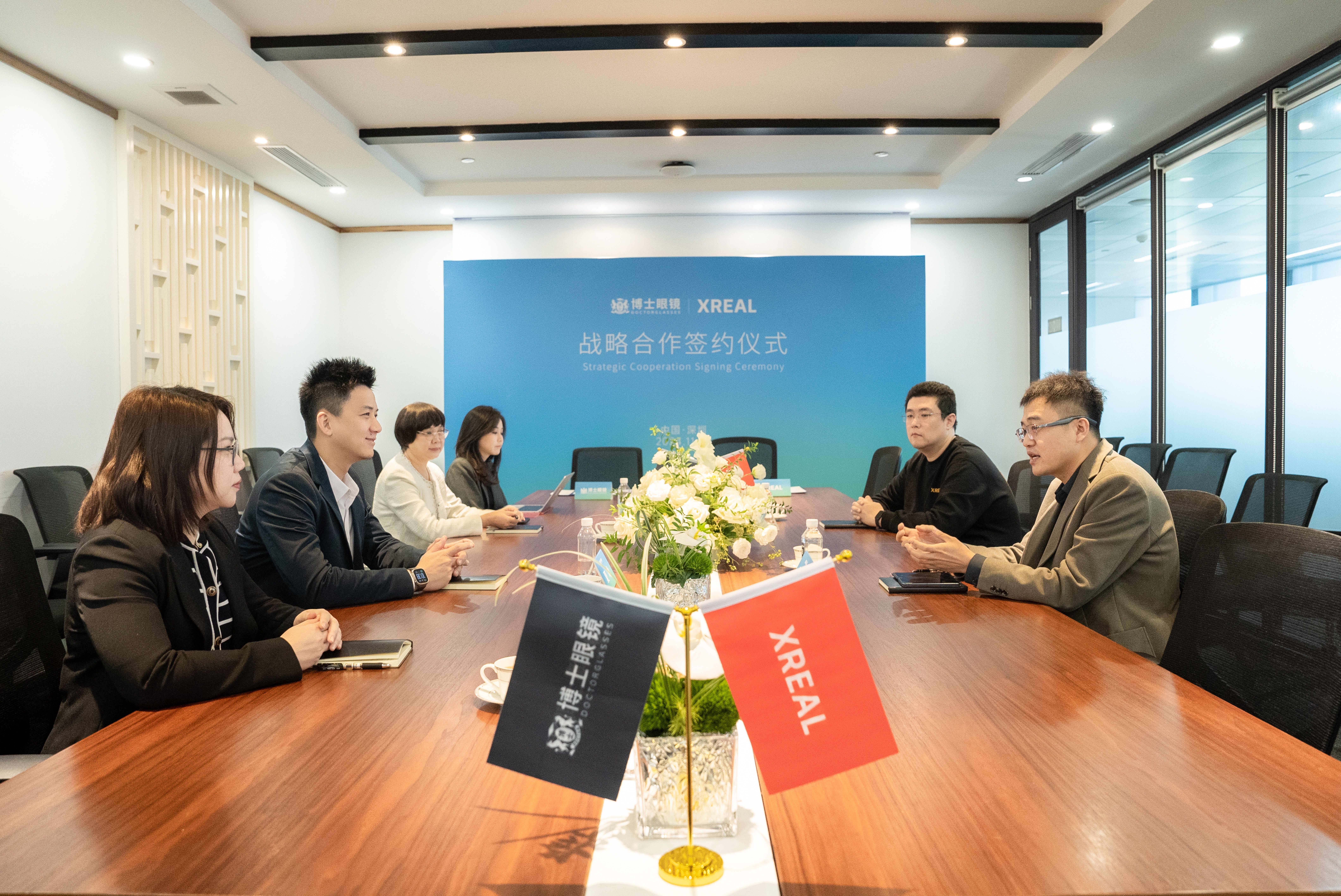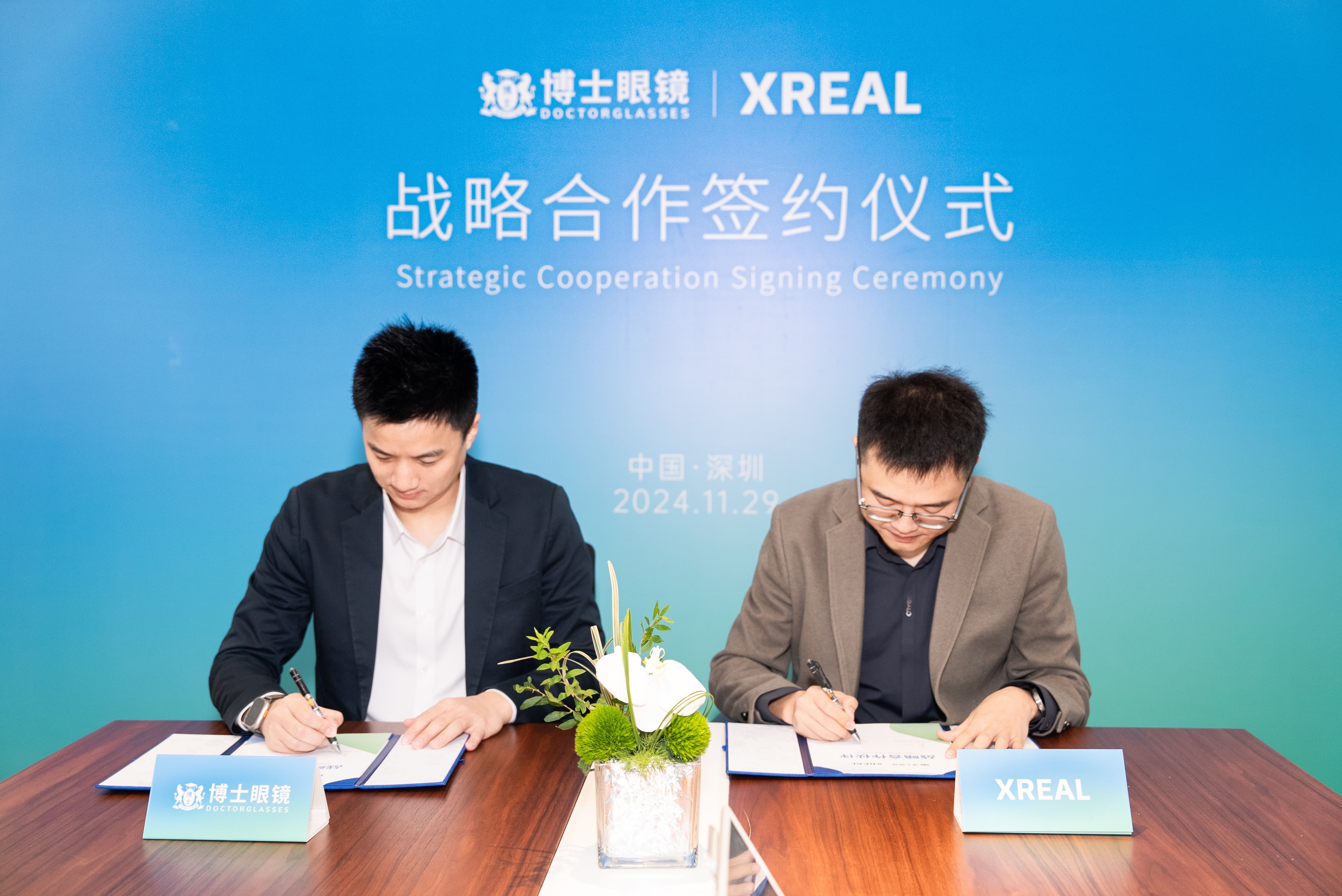 11月29日上午,博士眼鏡與 XREAL 在深圳博士眼鏡公司總部舉行了戰(zhàn)略合作簽約儀式。博士眼鏡首席運(yùn)營(yíng)官夏冰先生、首席采購官鄭慶秋女士、商品總監(jiān)黃明珠女士、公共關(guān)系負(fù)責(zé)人謝舒白女士,以及 XREAL 全球銷售負(fù)責(zé)人張龍杰先生、XREAL 國(guó)內(nèi)線下總監(jiān)李碩先生等雙方代表出席并簽署了合作協(xié)議。此次戰(zhàn)略合作標(biāo)志著博士眼鏡與 XREAL 將在智能眼鏡領(lǐng)域開啟全方位、深層次的合作,旨在共同探索智能眼鏡市場(chǎng)的無限可能。