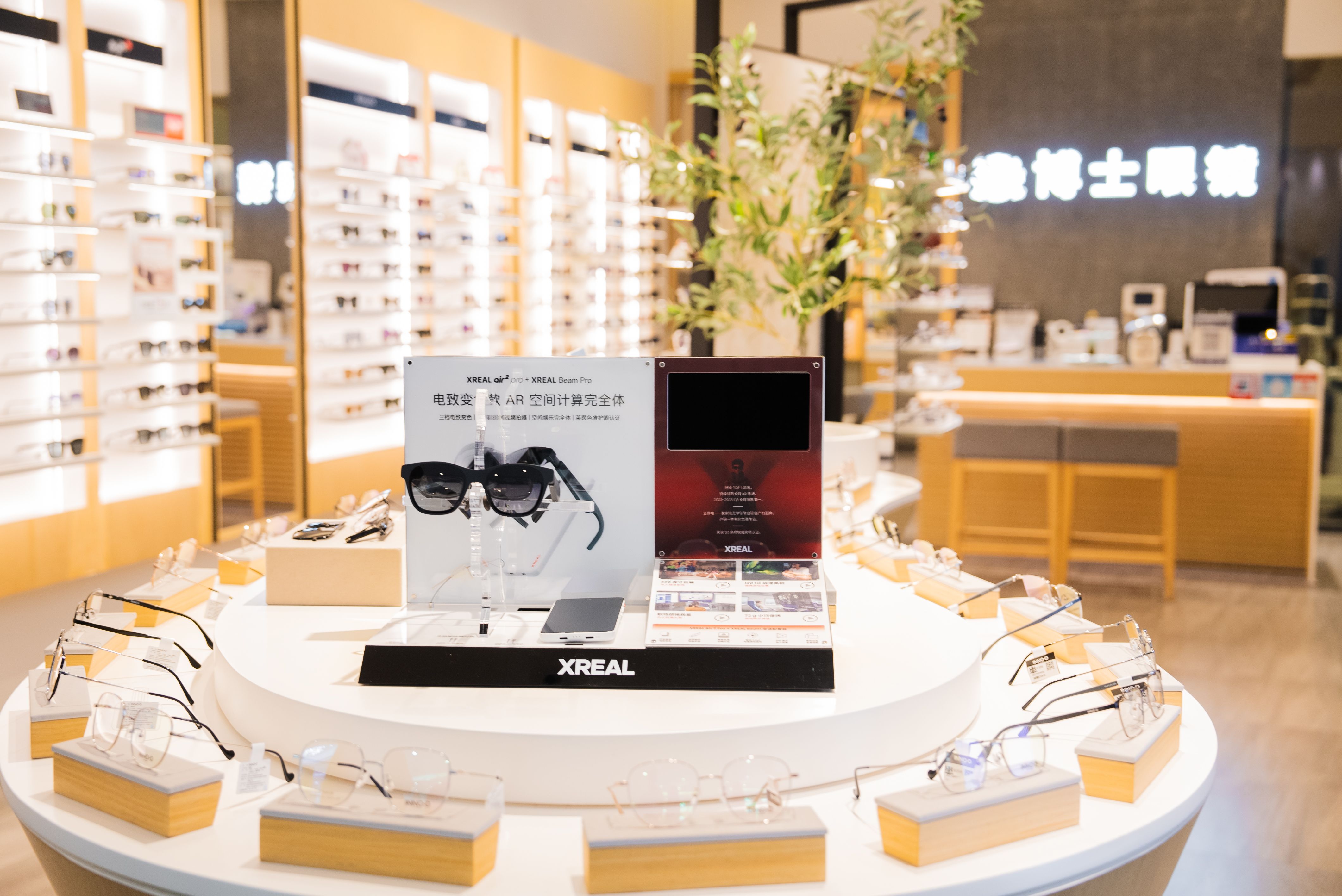 簽約儀式結(jié)束后,雙方代表一同前往博士眼鏡的實(shí)體門店進(jìn)行參觀。門店內(nèi)商品種類繁多,其中智能眼鏡展區(qū)尤為引人注目。該區(qū)域精心展示了當(dāng)前國(guó)內(nèi)市場(chǎng)上最前沿、最炙手可熱的智能眼鏡產(chǎn)品,其獨(dú)特的陳列方式更凸顯了產(chǎn)品的科技魅力與時(shí)尚感。 XREAL 全球銷售負(fù)責(zé)人張龍杰先生對(duì)博士眼鏡門店給予了高度評(píng)價(jià),并表示此次實(shí)地參觀加深了對(duì)博士眼鏡品牌實(shí)力的認(rèn)識(shí)。雙方通過親身體驗(yàn)與交流,對(duì)于如何更好地融合科技與創(chuàng)新,提升消費(fèi)者體驗(yàn)有了更加明確的方向與規(guī)劃。