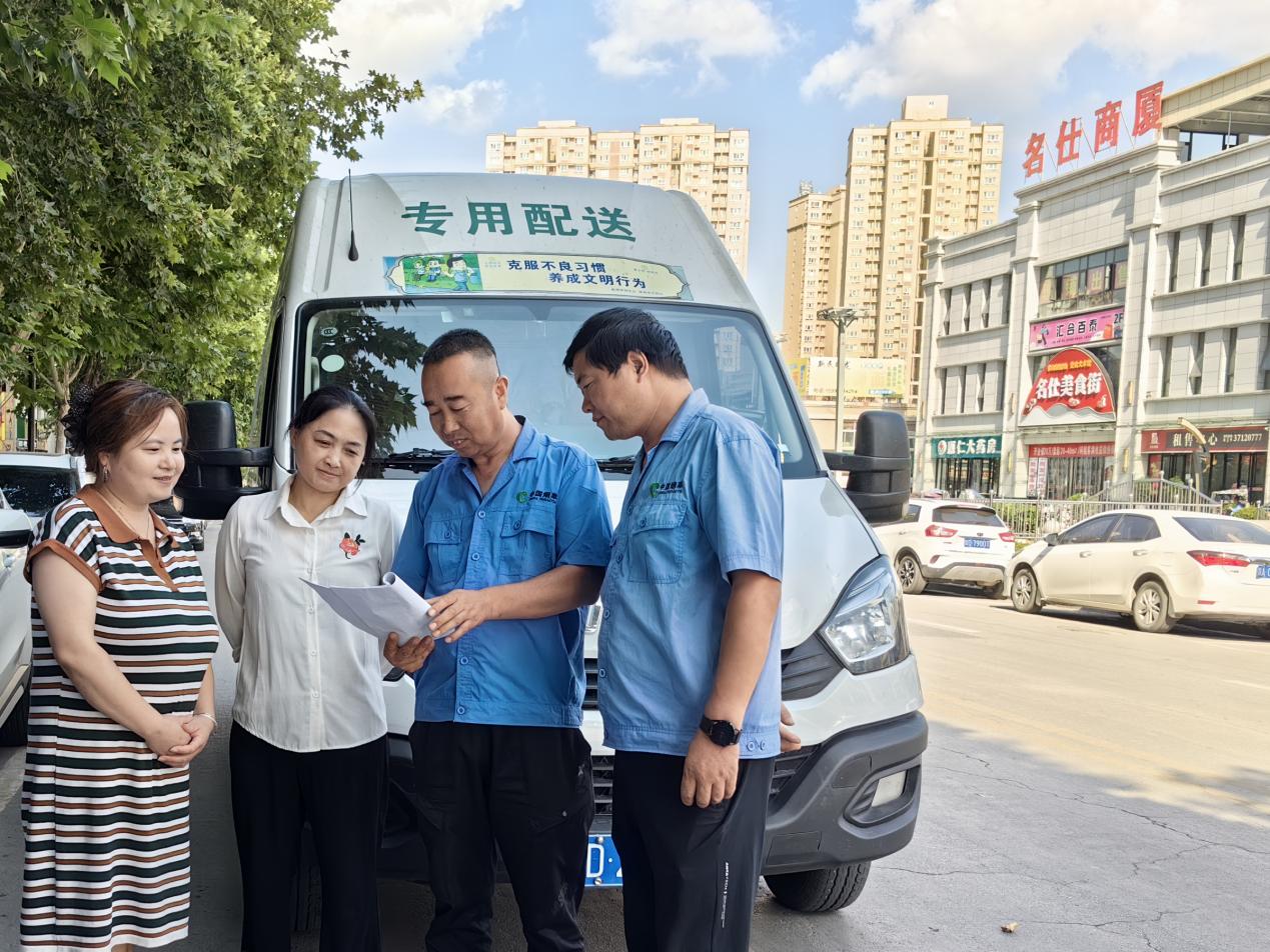 送貨員向向客戶宣傳綠色環(huán)保理念