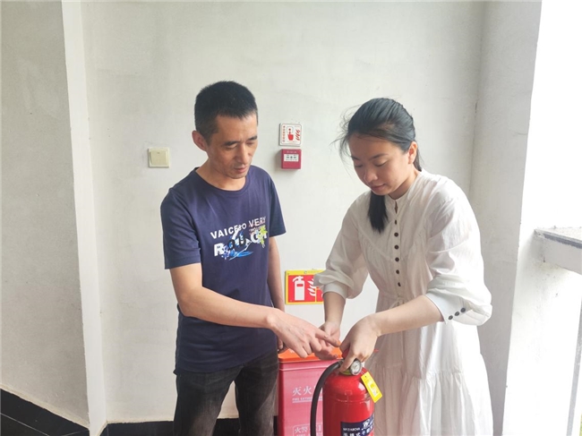 專(zhuān)職安全員在指導(dǎo)新員工使用消防器材 謝可供圖