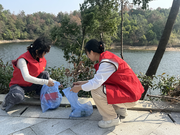 在志愿服務(wù)活動中,區(qū)局志愿者們身穿紅色馬甲,手持垃圾袋,為環(huán)保貢獻(xiàn)力量。