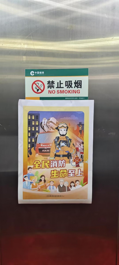 圖為電梯內(nèi)消防安全警示宣傳 張攀 攝