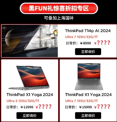 在ThinkPad黑FUN禮活動期間,驚喜折扣專區(qū)為消費者帶來了眾多優(yōu)惠選擇,匯集了多款備受歡迎的ThinkPad型號。這些機型均以極具競爭力的價格呈現,旨在讓用戶以更加實惠的價格獲取高品質設備。消費者在這里不僅能享受特別的折扣價格,還可以將優(yōu)惠與國家補貼相疊加,使得購機體驗更加劃算。專區(qū)精心挑選了各種型號,包括高性能的商務機型和輕薄便攜的個人筆記本,滿足不同用戶的需求。ThinkPad X1 Carbon和ThinkPad Yoga系列是其中的明星產品,以其出色的設計和創(chuàng)新的功能深受用戶喜愛。