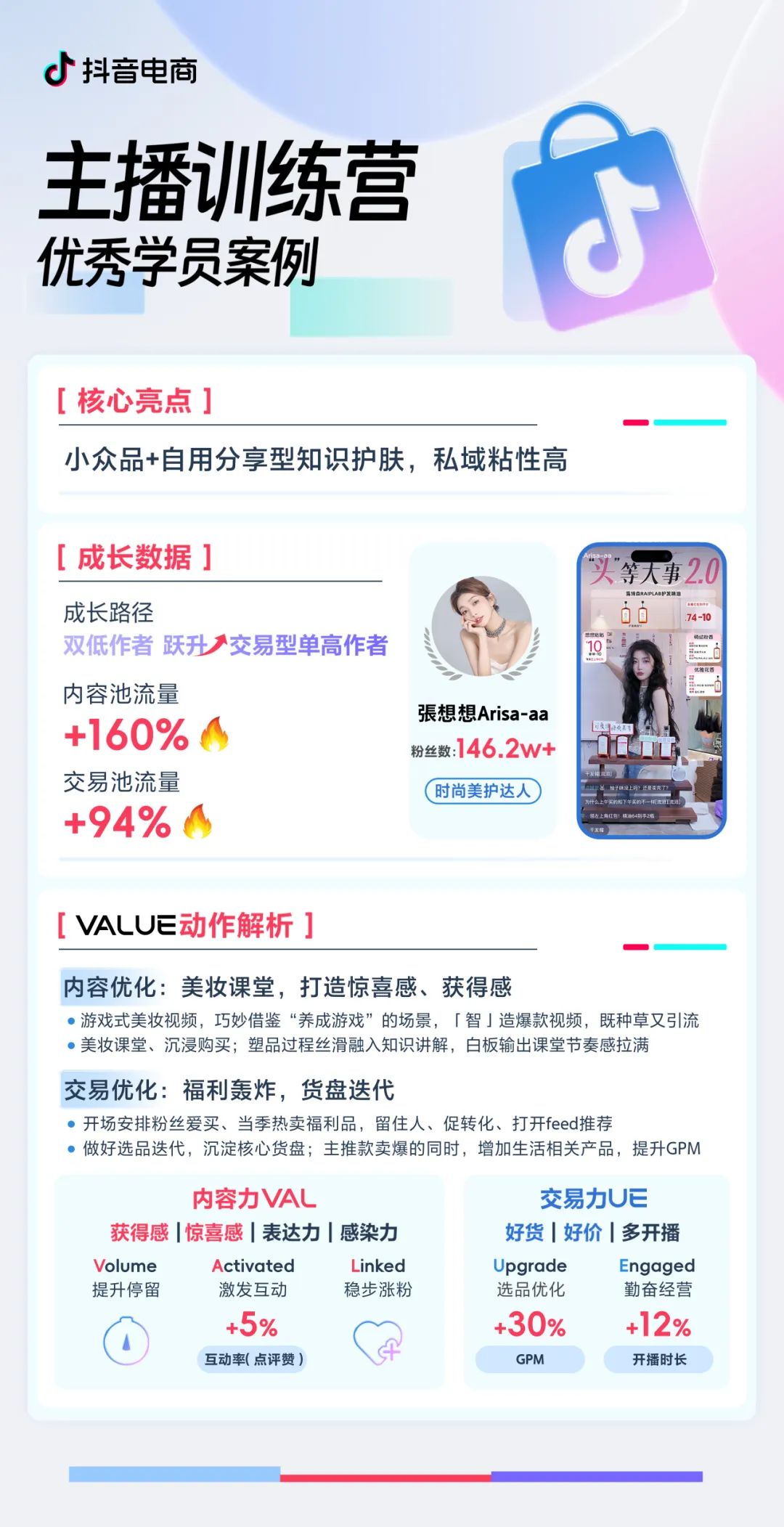 可以預(yù)見,未來隨著抖音電商“全域興趣電商”的建設(shè),內(nèi)容池的流量天花板越來越高,內(nèi)容力的重要性將只增不減,而主播訓(xùn)練營也將不斷用VALUE方法論為作者提供更多支持和幫助。