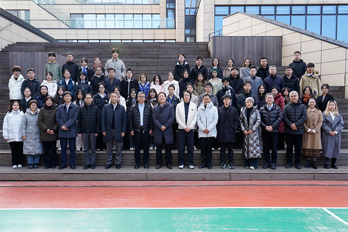 國家住宅與居住環(huán)境工程技術(shù)研究中心主任張磊(右五)、臺達(dá)公益事業(yè)部總監(jiān)陳奕祥(右四)與競賽評審專家及現(xiàn)場答辯團(tuán)隊合影