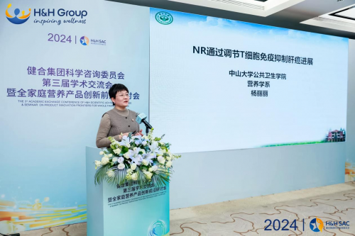 中山大學(xué)公共衛(wèi)生學(xué)院營(yíng)養(yǎng)學(xué)系主任楊麗麗教授圍繞《NR通過(guò)調(diào)節(jié)T細(xì)胞免疫抑制肝癌進(jìn)展》研討話題,強(qiáng)調(diào)了NR等營(yíng)養(yǎng)因素對(duì)未來(lái)人體健康防治產(chǎn)生的重要科研引領(lǐng)作用。
