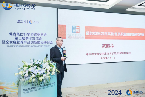 中國(guó)農(nóng)業(yè)大學(xué)動(dòng)物科學(xué)技術(shù)學(xué)院武振龍教授則分享了《貓的微生態(tài)與其他各系統(tǒng)健康的相關(guān)研究進(jìn)展》研討話題,不僅介紹了腸道益生菌在功能性寵物食品中的應(yīng)用,還提出了貓的腸道微生物可能成為提高動(dòng)物健康新靶點(diǎn)的見解,為寵物益生菌應(yīng)用提供科學(xué)新方向。