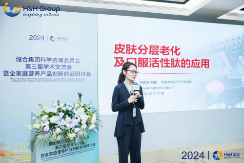 北京大學(xué)公共衛(wèi)生學(xué)院營(yíng)養(yǎng)與食品衛(wèi)生學(xué)系許雅君教授,也通過(guò)《皮膚分層衰老機(jī)制與分型膠原解決策略探討》主題報(bào)告說(shuō)明,膠原蛋白肽近年來(lái)研究越來(lái)越精細(xì)化,其中不同構(gòu)型的膠原蛋白肽被發(fā)現(xiàn)在面部結(jié)構(gòu)中起不同的作用。而臨床實(shí)驗(yàn)證明,口服具有生物活性的膠原蛋白肽,被證實(shí)其具有增加皮膚含水量、抗皺、增白等效果。