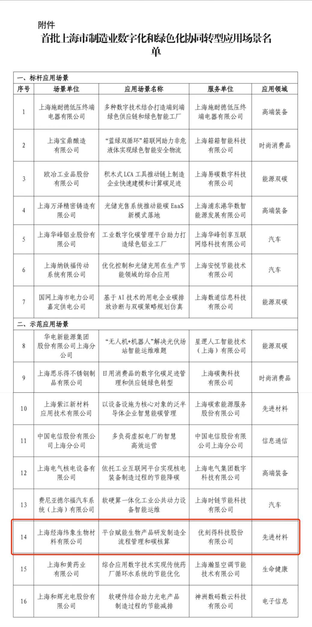 為加快落實《上海市推動制造業(yè)數(shù)字化和綠色化協(xié)同轉型發(fā)展行動方案(2024年-2027年)的通知》(滬經(jīng)信研〔2024〕256號)要求,打造數(shù)字化和綠色化協(xié)同轉型標桿應用場景,加快推進新型工業(yè)化發(fā)展,上海市組織開展本次評選工作,共計16個應用場景入選,以發(fā)揮行業(yè)示范引領作用。