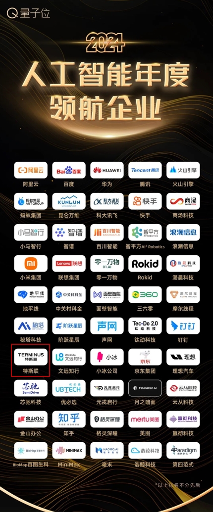 量子位2024人工智能年度領(lǐng)航企業(yè)榜單