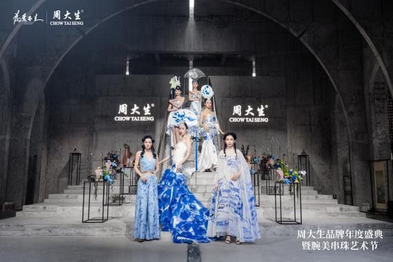 在這座具有光影秩序之美的建筑內(nèi),大秀開場。一改走秀的傳統(tǒng)印象,周大生以情景化設計演繹國風國潮、時尚藝術、萌趣可愛三大主題產(chǎn)品風格,引出“青花系列”產(chǎn)品大軸出場,打造國內(nèi)首個珠寶創(chuàng)意秀場。通過實力創(chuàng)作派說唱歌手寶石Gem原創(chuàng)歌曲《潮起大生》結合創(chuàng)意扇子舞表演開啟大秀;通過百花舞蹈、千里江山圖舞蹈、小堆堆面具舞蹈、生肖蛇年舞動表演,讓人感受周大生國風國潮主題產(chǎn)品古今交疊的特別美感;通過手碟音樂與畫家的藝術表演,引出周大生莫奈IP、梵高IP等產(chǎn)品的創(chuàng)意走秀,巨型畫框與時尚道具讓人感受周大生時尚藝術主題產(chǎn)品的魅力及情感的溫度;通過聚集多種類型時髦小狗秀出周大生×周同學、周大生×旺仔牛奶糖等萌趣可愛主題產(chǎn)品,人寵同臺解鎖珠寶秀場新體驗。