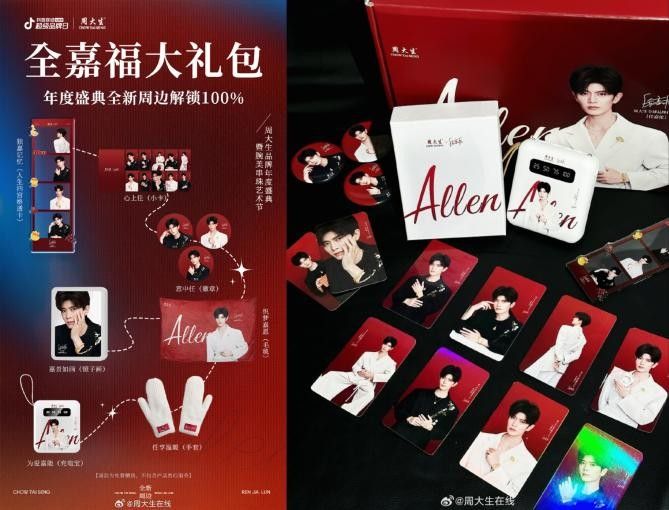最后,值得關注的是此次直播周大生還發(fā)布了全新的任嘉倫周邊,“任意選”三件套大禮包、“嘉溫暖”五件套大禮包、“全嘉?!逼呒状蠖Y包,其中內(nèi)含【心上任】小卡、【意中任】徽章、【獨嘉記憶】透卡、【任享溫暖】手套、【嘉景如畫】鏡子畫、【織夢嘉愿】毛毯、【為愛嘉能】充電寶,每一件周邊都心意滿滿,超級暖心~