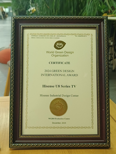 日前,海信ULED AI畫質(zhì)電視U8系列產(chǎn)品榮獲了世界綠色設(shè)計(jì)組織(WGDO)頒發(fā)的“2024綠色設(shè)計(jì)國際大獎(jiǎng)” ,海信作為唯一獲此殊榮的中國彩電品牌,堅(jiān)持綠色發(fā)展理念,通過綠色設(shè)計(jì)技術(shù)的研發(fā)和應(yīng)用,不斷為用戶提供綠色低碳產(chǎn)品,U8系列成為企業(yè)推動(dòng)綠色科技發(fā)展的成功典范。