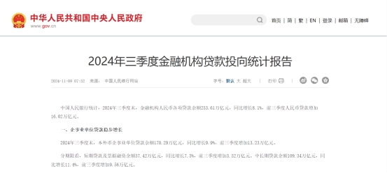 據(jù)央行發(fā)布的《2024年11月金融統(tǒng)計(jì)數(shù)據(jù)報(bào)告》顯示,2024年11月末,人民幣貸款余額254.68萬(wàn)億元,同比增長(zhǎng)7.7%,增速比上年同期低3.1個(gè)百分點(diǎn)。前十一個(gè)月人民幣貸款增加17.1萬(wàn)億元,同比少增4.48萬(wàn)億元。