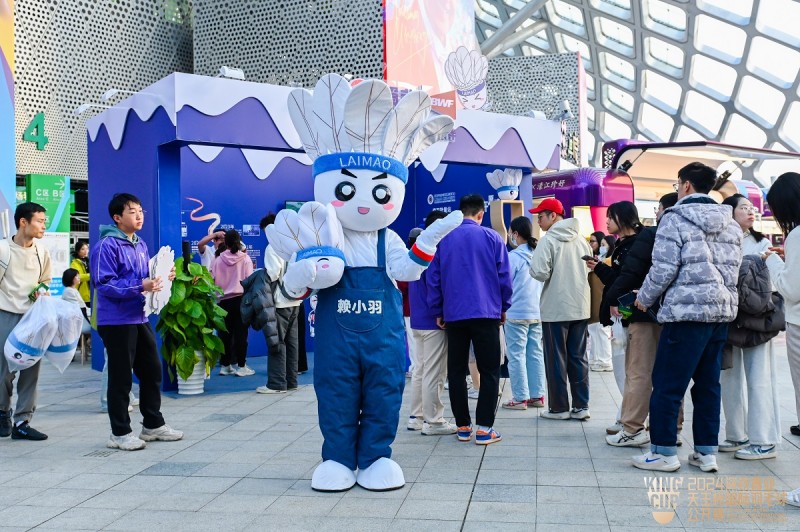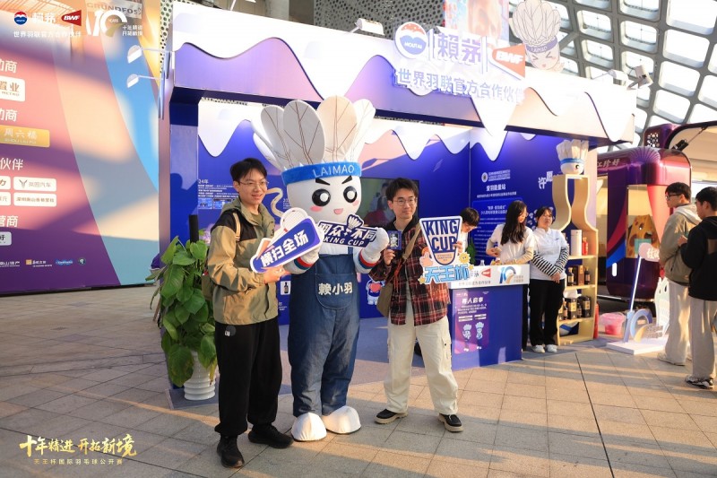 賴茅IP形象“賴小羽”以展位運營人員的身份亮相天王杯嘉年華區(qū)域,憑借其萌趣可愛的外形和幽默風趣的互動風格,迅速成為現場觀眾的“團寵”。