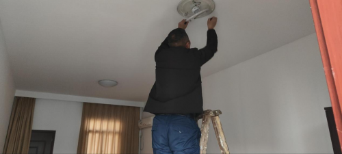 維修人員為孔壟所部的員工宿舍更換燈具 蔡環(huán)澤/攝