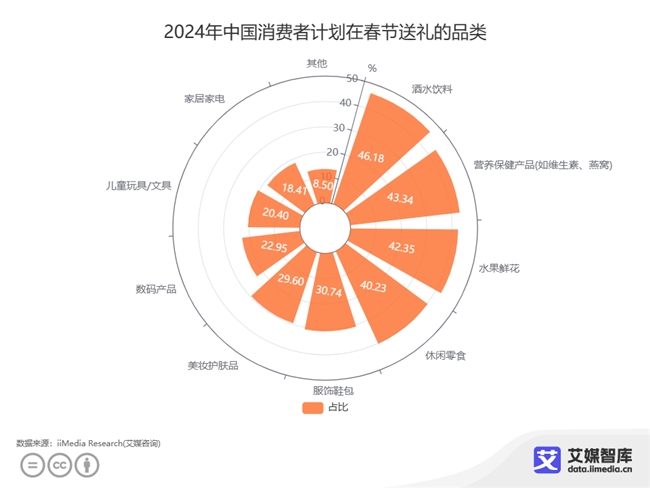 與此同時(shí),隨著人們對(duì)春節(jié)儀式感的愈加重視和送禮需求的不斷增長(zhǎng),中國(guó)新春禮品行業(yè)正迎來(lái)新的發(fā)展機(jī)遇。艾媒咨詢數(shù)據(jù)顯示,近年春節(jié)禮品市場(chǎng)穩(wěn)定增長(zhǎng),行業(yè)復(fù)合增長(zhǎng)率達(dá)7%。數(shù)據(jù)還顯示,在中國(guó)消費(fèi)者春節(jié)送禮計(jì)劃中,90.98%消費(fèi)者會(huì)選擇送禮。而送禮的品類,46.18%的消費(fèi)者選擇酒水飲料。