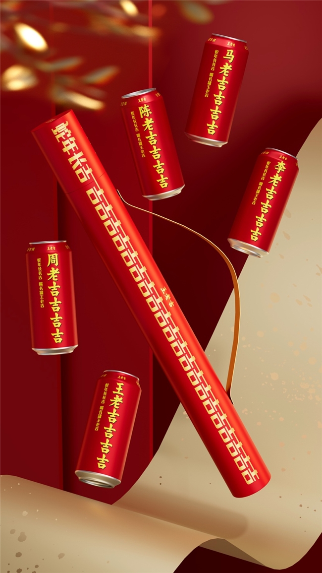 2023年,王老吉將傳統(tǒng)文化與現(xiàn)代流行完美嫁接推出“百家姓氏圖騰罐”;2024年王老吉更進(jìn)一步,在姓氏罐的基礎(chǔ)上推出龍年六吉罐,六種定制的罐身蘊(yùn)含了品牌關(guān)于新春祝福的創(chuàng)意,受到廣大消費(fèi)者的追捧。