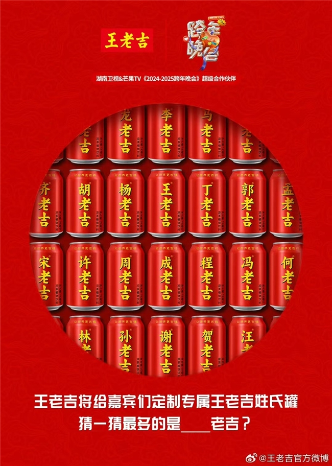一方面,王老吉把注意力放在年輕人青睞的湖南衛(wèi)視跨年演唱會(huì)、湖南衛(wèi)視小年夜,并量身定制優(yōu)質(zhì)內(nèi)容,將歡度新春的氛圍融入品牌宣傳。