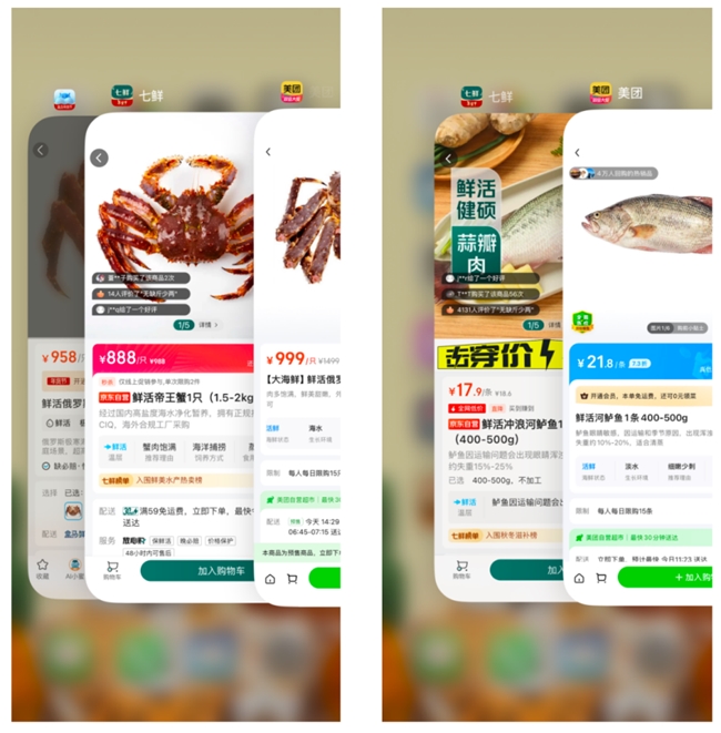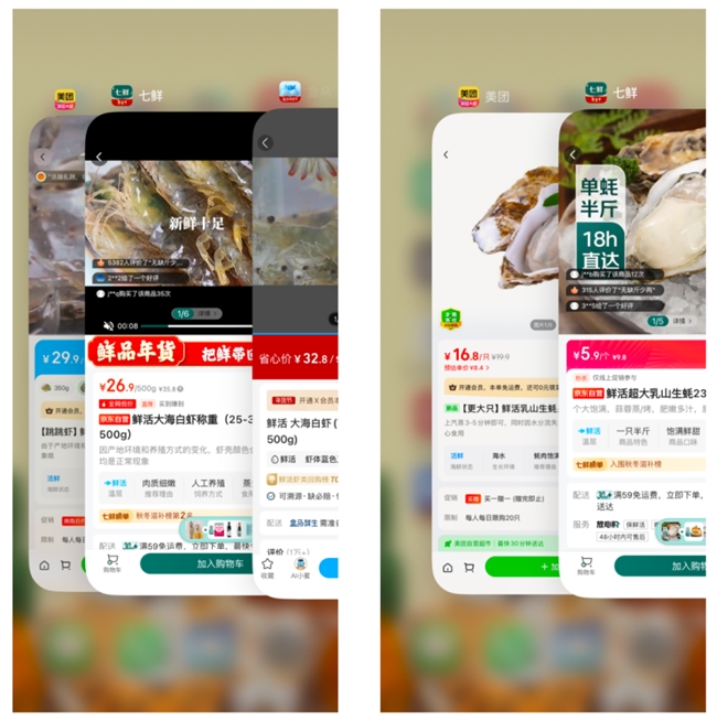 京東七鮮鮮活大海白蝦從山東濱州養(yǎng)殖基地源頭直采,水域純凈,品質(zhì)有保證,擊穿價僅售26.9元一斤。美團小象價格為29.9元,盒馬價格32.8元,都比京東七鮮貴出10%還多。鮮活超大乳山生蠔,京東七鮮秒殺價5.9元一只,美團小象16.8元一只,比京東七鮮貴了近三倍。