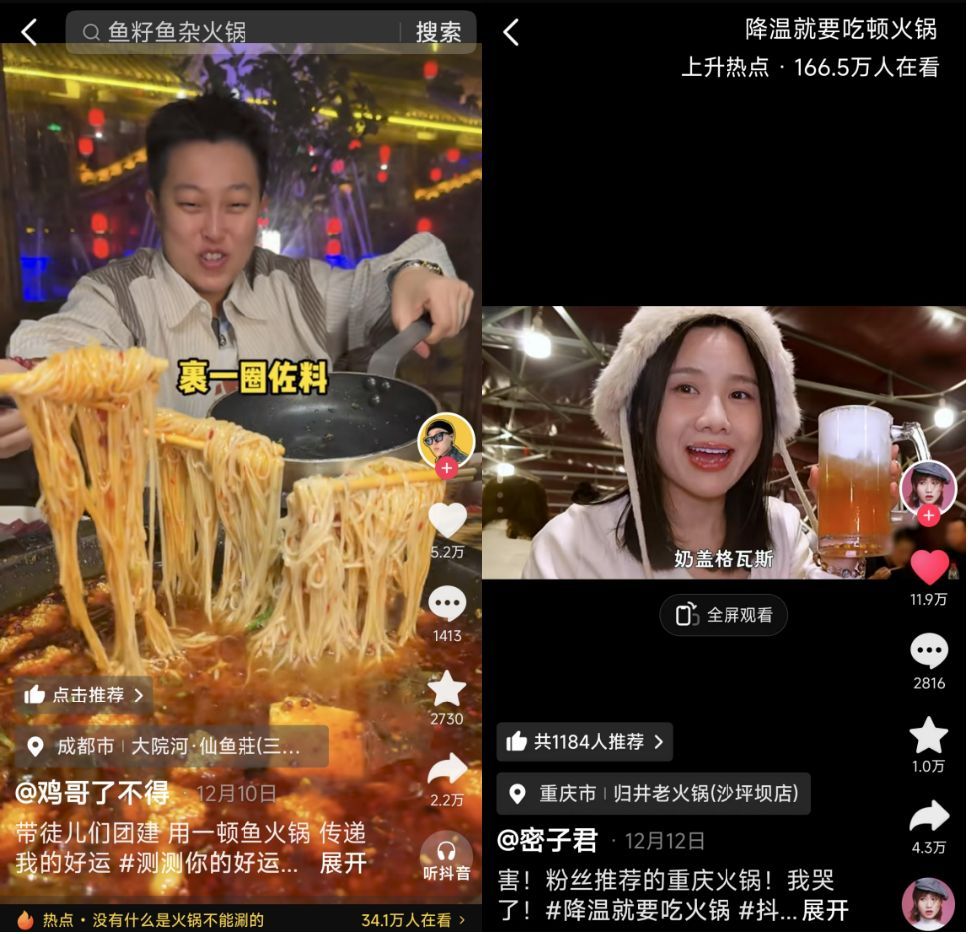 對(duì)用戶而言,在持續(xù)降溫的冬季,【抖音生活火鍋季】保證了這一火鍋消費(fèi)高峰時(shí)期的貨品供給,提供了“吃著火鍋唱著歌”等好玩又暖意十足的暢吃體驗(yàn),是暖冬生活里的一次美好嘗試。對(duì)商家來(lái)說(shuō),平臺(tái)提供的規(guī)模曝光資源,助力他們?nèi)嫣嵘擞脩舾兄?;而萬(wàn)物皆可火鍋+的營(yíng)銷策略,也切實(shí)幫助商家突破節(jié)點(diǎn)營(yíng)銷同質(zhì)化的困境,并在音樂(lè)節(jié)、主題店等特色場(chǎng)景中,和用戶建立了更深的情感鏈接。