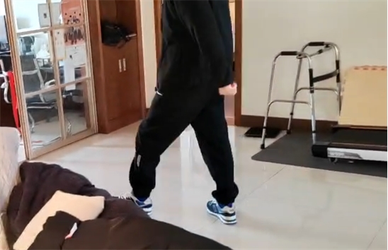 手術(shù)后一個(gè)月,患者在家中主動(dòng)給醫(yī)生發(fā)來錄像,分享他步態(tài)改善的快樂。