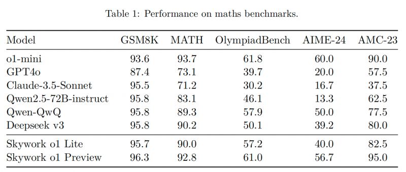 可以看出,在數學、代碼基準測試中,Skywork o1的能力表現逼近o1-mini,顯著優(yōu)于行業(yè)常規(guī)通用大模型。