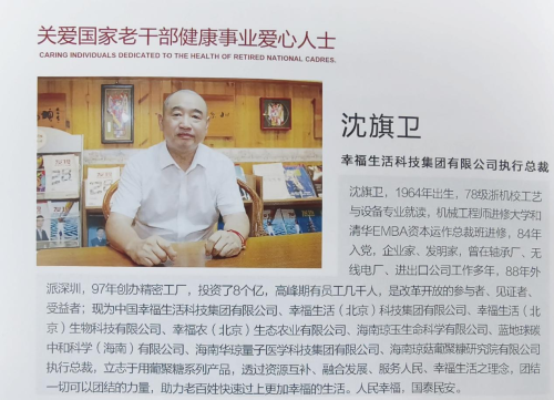 并對(duì)幸福生活科技集團(tuán)執(zhí)行總裁沈旗衛(wèi)進(jìn)行了《健康中國(guó)·銀齡力量》專訪報(bào)道。