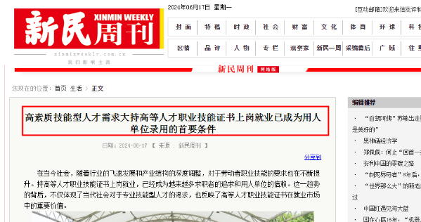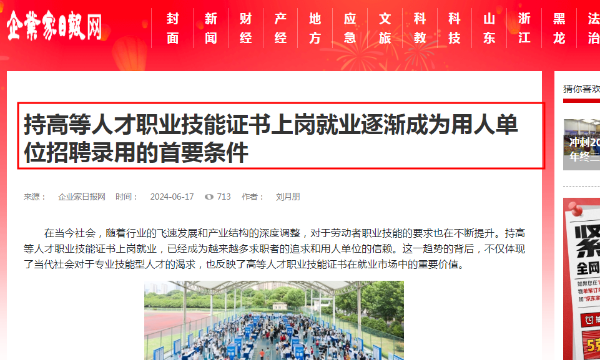 企業(yè)家日報(bào),新民周刊官方報(bào)道:持高等人才職業(yè)技能證書上崗就業(yè)逐漸成為用人單位招聘錄用的首要條件