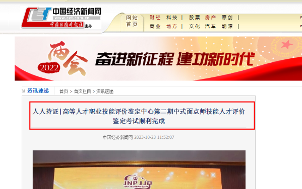 中國經(jīng)濟(jì)新聞網(wǎng)報(bào)道了人人持證|高等人才職業(yè)技能評價(jià)鑒定中心第二期中式面點(diǎn)師技能人才評價(jià)鑒定考試順利完成