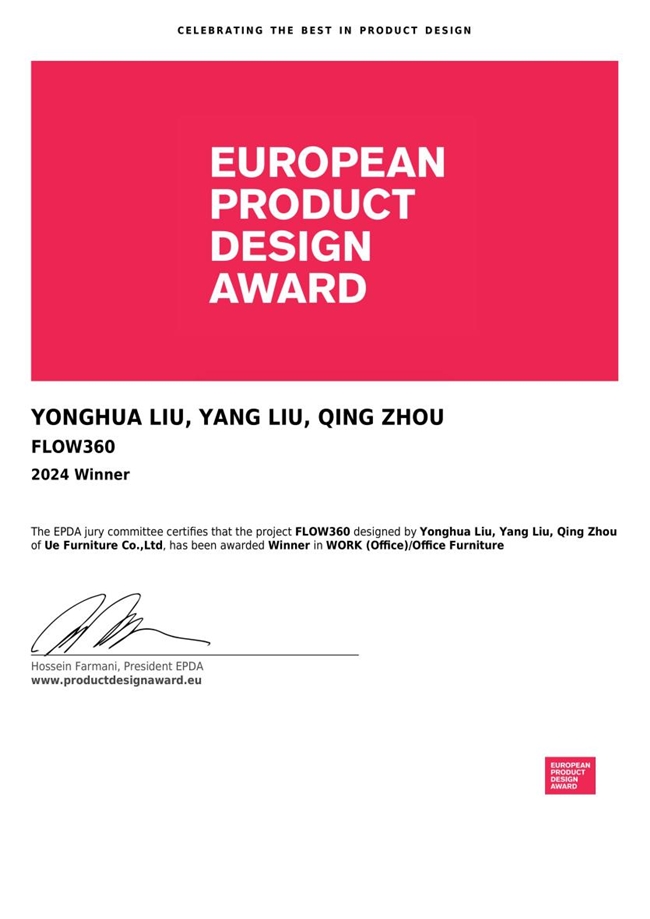 近日,2024年度歐洲產(chǎn)品設(shè)計獎(European Product Design Award,簡稱EPDA)獲獎名單公布。永藝撐腰椅FLOW360憑借卓越的產(chǎn)品設(shè)計和技術(shù)實力脫穎而出,榮獲2024年度歐洲產(chǎn)品設(shè)計獎“優(yōu)勝獎”。