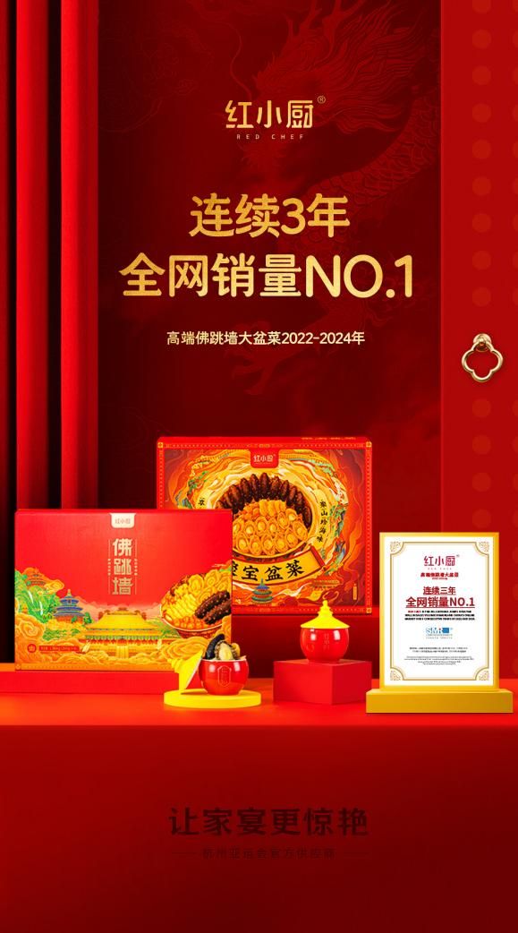 據(jù)權威市調機構數(shù)據(jù)顯示,紅小廚位居2024年高端佛跳墻大盆菜全網(wǎng)銷量NO.1,實現(xiàn)連續(xù)三年領跑行業(yè),成為國內“御膳美食”市場首個銷量“三連冠”的品牌。