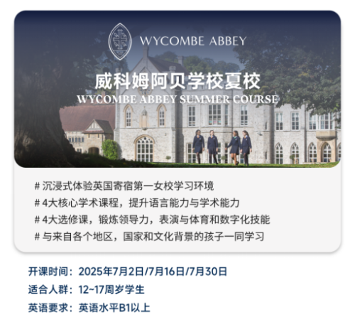 此外, 我們的英國(guó)姐妹校威科姆阿貝學(xué)校,為想要領(lǐng)略英倫名校風(fēng)情、感受英國(guó)私校生活的你,推出了為期2周的夏校項(xiàng)目: