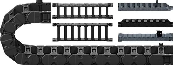 拖鏈?zhǔn)且环N機(jī)械工具的元件。采用拖鏈來(lái)保護(hù)和引導(dǎo)能源、數(shù)據(jù)、信號(hào)、以承受各種外界環(huán)境帶來(lái)的影響。在移動(dòng)過(guò)程中,引導(dǎo)電纜的決定性因素是拖鏈電纜及其組件之間的互相作用,互相依賴關(guān)系,組件包括電纜、軟管、內(nèi)部分隔片、去應(yīng)力元件和導(dǎo)槽。材料經(jīng)過(guò)優(yōu)化和磨合,從而達(dá)到最大運(yùn)行時(shí)間和最長(zhǎng)使用壽命。采用igus易格斯拖鏈系統(tǒng)保護(hù)電纜、氣管或液壓軟管等負(fù)載運(yùn)行,可以最大化地避免停機(jī)和節(jié)約成本。