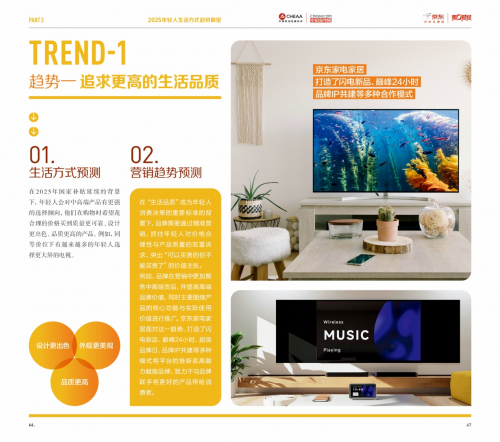 報告提到,當代年輕消費者更注重家居空間的整體設計與功能美學,家居生活開始充滿秩序美學,表達“家居與藝術共存”氛圍感的藝術電視,2024年在京東上的成交額同比增長了3.5倍。此外,京東認為,當代消費者還追求家生活的松弛悅己感受,同時對于家庭氛圍有著更加細分、多元的需求,一人食、二人世界、三口之家,針對不同的人生階段,京東為消費者匹配推薦不同的產品,以提升生活的舒適度與幸福感。