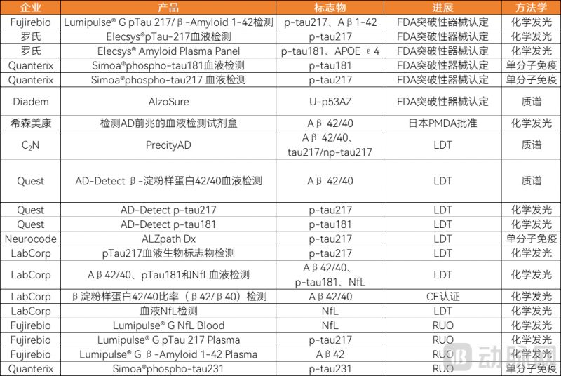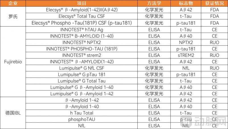 海外AD腦脊液檢測企業(yè)及產(chǎn)品進展