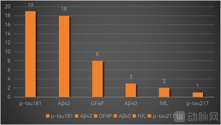 獲批的試劑盒所檢測的生物標志物以AD的核心生物標志物為主,包括血漿Aβ42/Aβ40、p-tau181、p-tau217、p-tau231。
