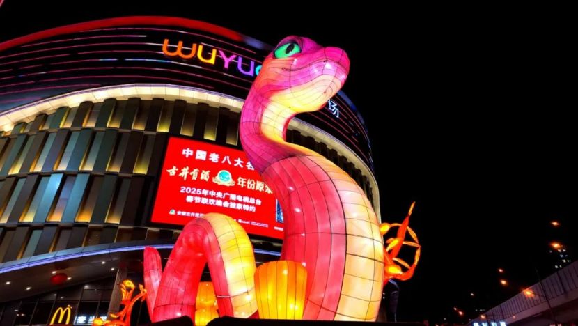 ? 合肥肥東吾悅廣場的“金蛇花燈”象征著金蟒盤福,華燈映春,以一場視覺盛宴,邀您共赴新春之約。