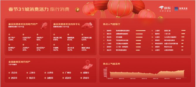 2025年春節(jié)迎來“最長假期”,人們外出旅游的熱情被充分激發(fā)。京東攜手聯(lián)通數(shù)智智慧足跡,對全國31個省會城市、自治區(qū)首府和直轄市的景點客流量及旅行消費進(jìn)行了實時統(tǒng)計,反映出消費者對城市旅行及地方特產(chǎn)的鐘愛。