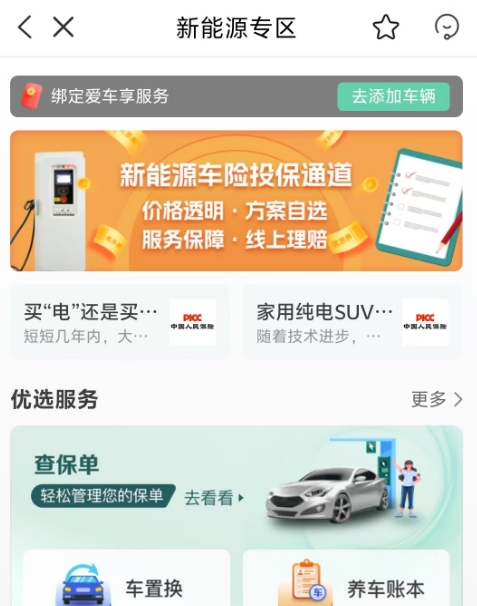 “買了車險后發(fā)現(xiàn)相關服務很差,在一個平臺買車險,又要在另一個平臺找充電樁服務,實在是太不方便了,就一個車服務要在幾個APP上來回切換,要是能有一個平臺集合車險和一套服務就好了”不少網(wǎng)友也有這樣的期待,“好在現(xiàn)在在人保APP上續(xù)保后,發(fā)現(xiàn)他們有個新能源專區(qū),里面不僅有車置換、理賠等各種服務,還有新能源車保養(yǎng)秘籍等文章,感覺一下子找到了寶藏”。