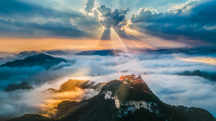 茱萸峰千百年來被譽(yù)為仙山瓊閣,歷代文人雅士、四方名流前來登臨者絡(luò)繹不絕。極頂茱萸峰,身居云蒸霞蔚之際,煙云縹緲變幻無窮。清代文人許邦彥曾寫詩稱贊茱萸峰“奇峰萬仞一飛身,手托日月足登云”。