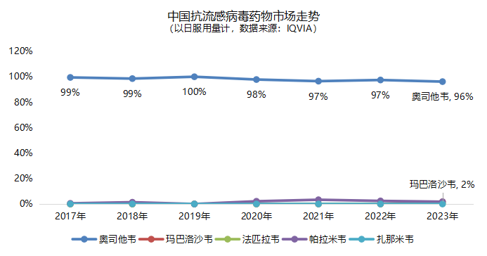 在中國市場,奧司他韋占比高達(dá)96%,幾乎成為唯一主流口服抗流感藥物【6】。