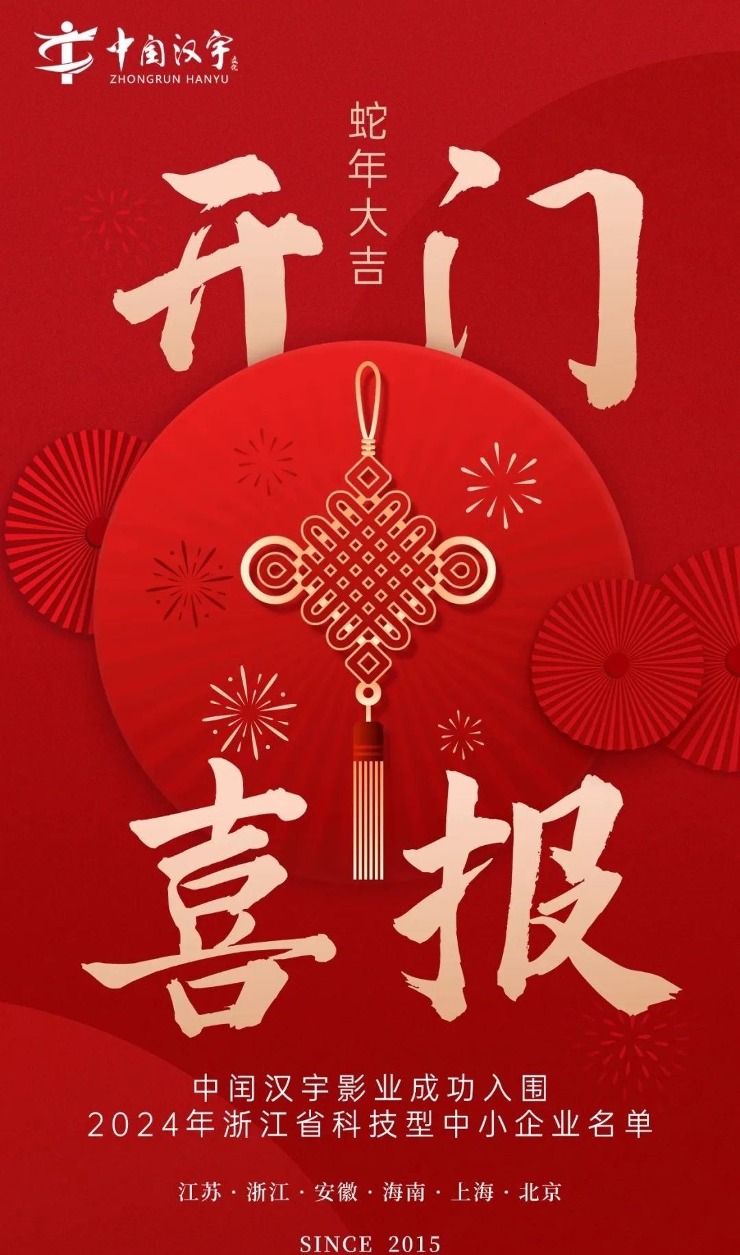 近日,根據(jù)《浙江省科技型中小企業(yè)認定管理辦法》(浙科發(fā)高〔2016〕88號),2024年12月31日浙江省經(jīng)濟和信息化廳發(fā)布了《關(guān)于公布2024年度浙江省科技型中小企業(yè)備案名單的通告》,杭州中閏漢宇影業(yè)有限公司(以下簡稱“中閏漢宇影業(yè)”)順利通過評審,入選2024年度浙江省科技型中小企業(yè)。
