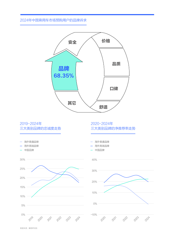 近二三十年,中國購車用戶一直非常注重品牌,2024年的品牌訴求仍高達68.35%;